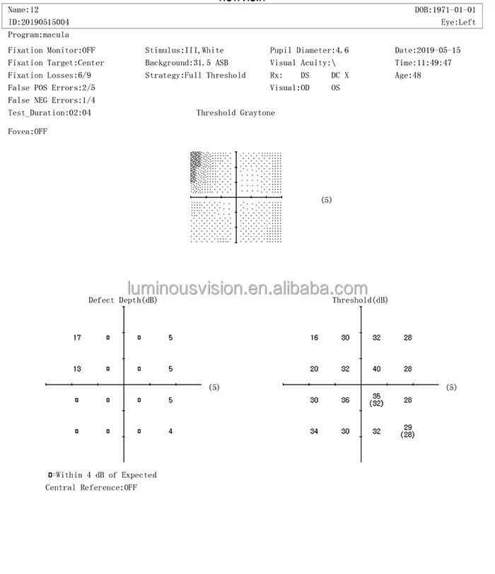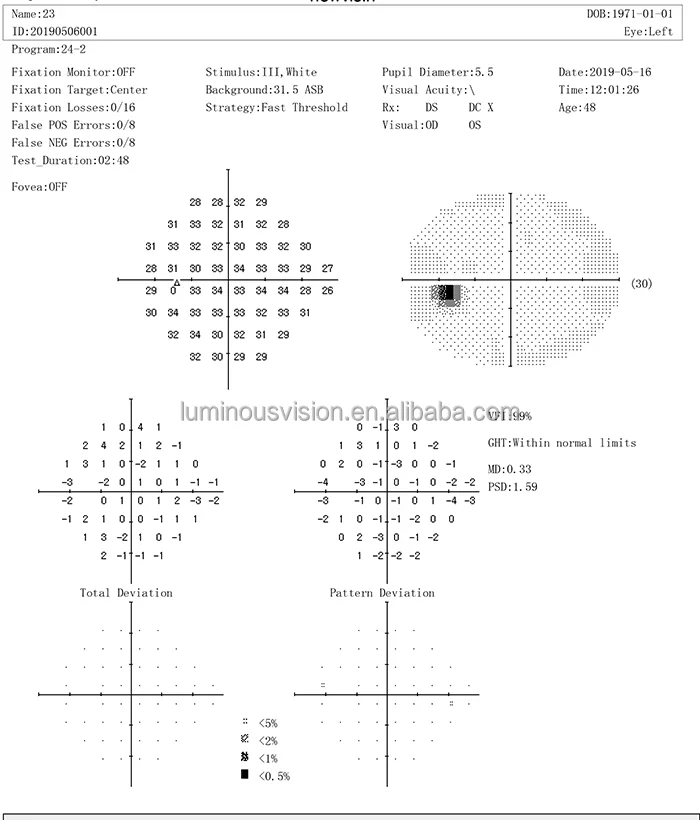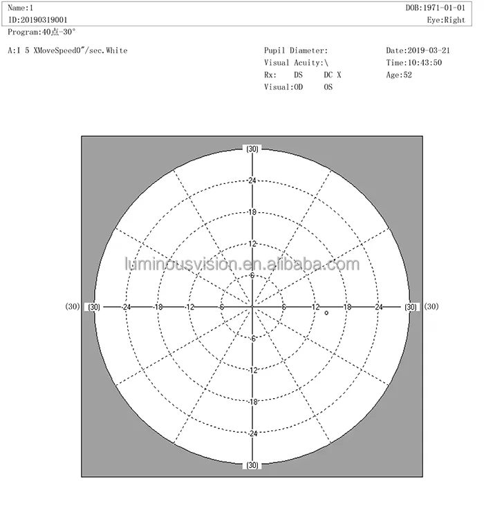 Threshold test model | Center5-°16, center10° -68, 24 -2, 30-2, 30° -60° nasal step |