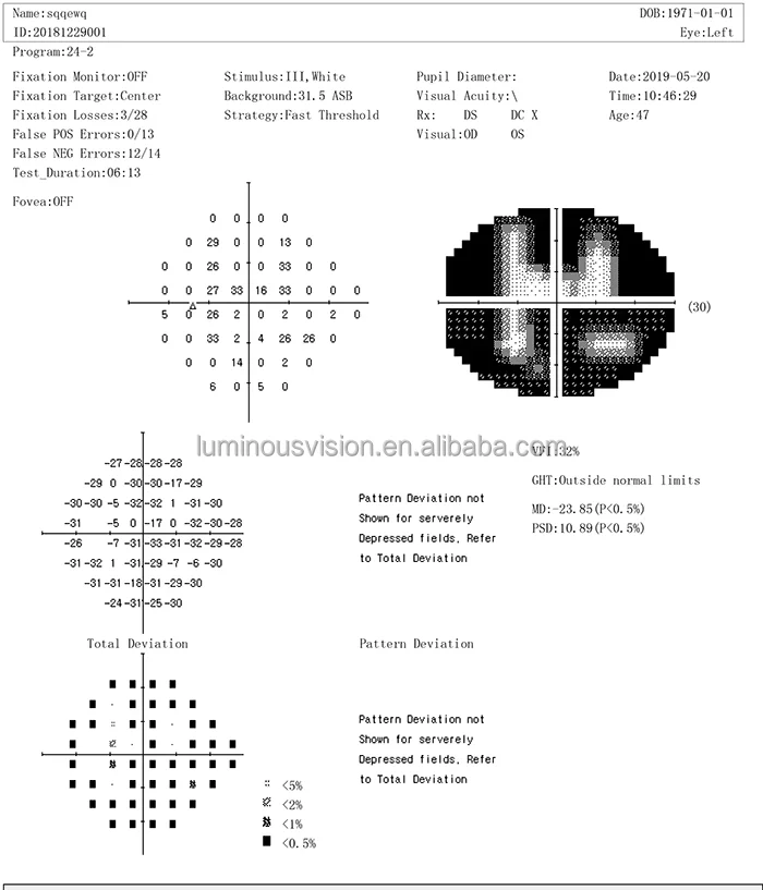 Analysis software | Reliability analysis , single vision report, triple visionreport, GPA half vision analysis, GPA glaucoma developing analysis , VFI vision index analysis |