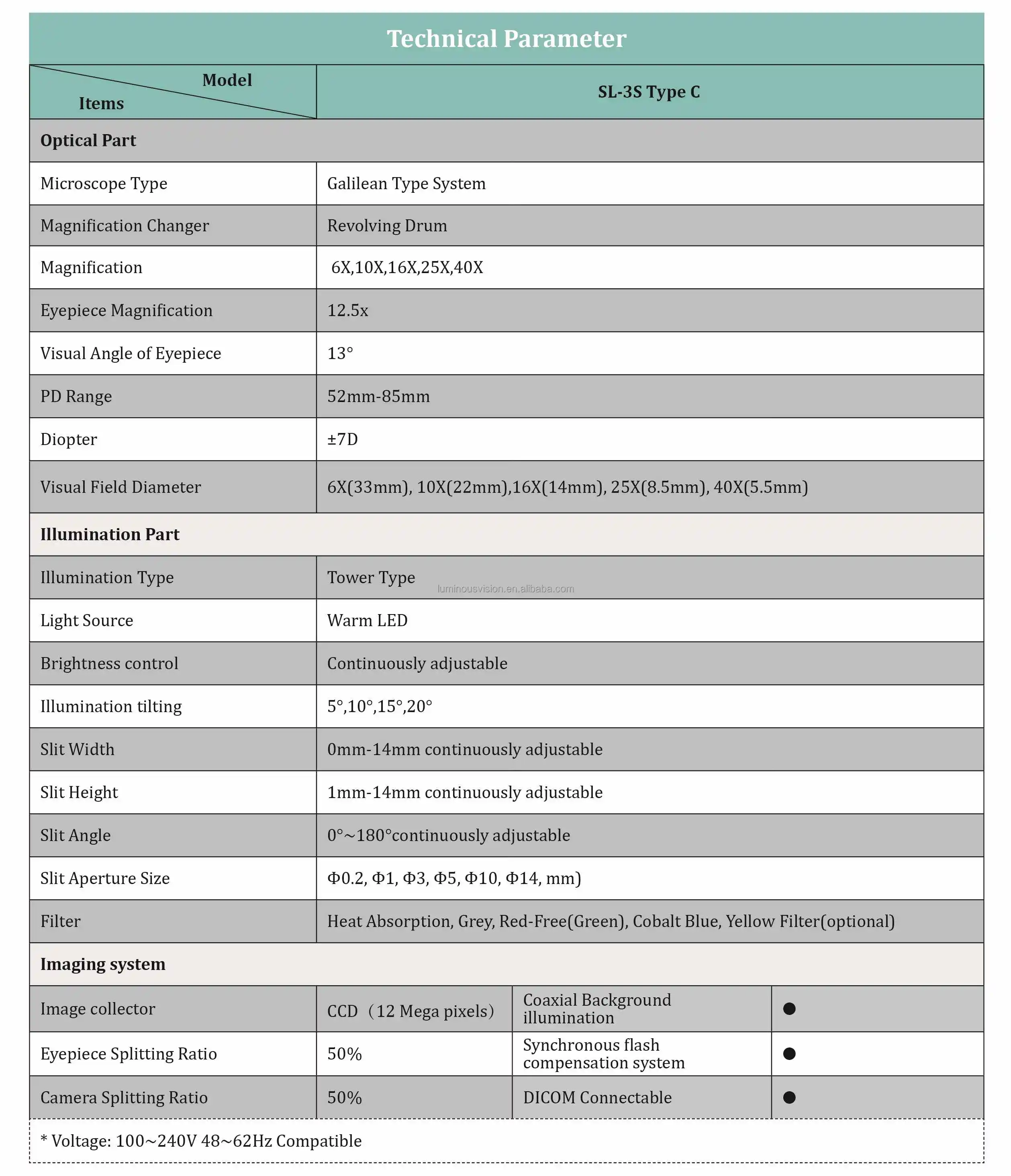 • Magnification Ophthalmology Equipment SL-3S Type C Digital Slit Lamp CCD Camera  LED Slit Lamp 5-Step